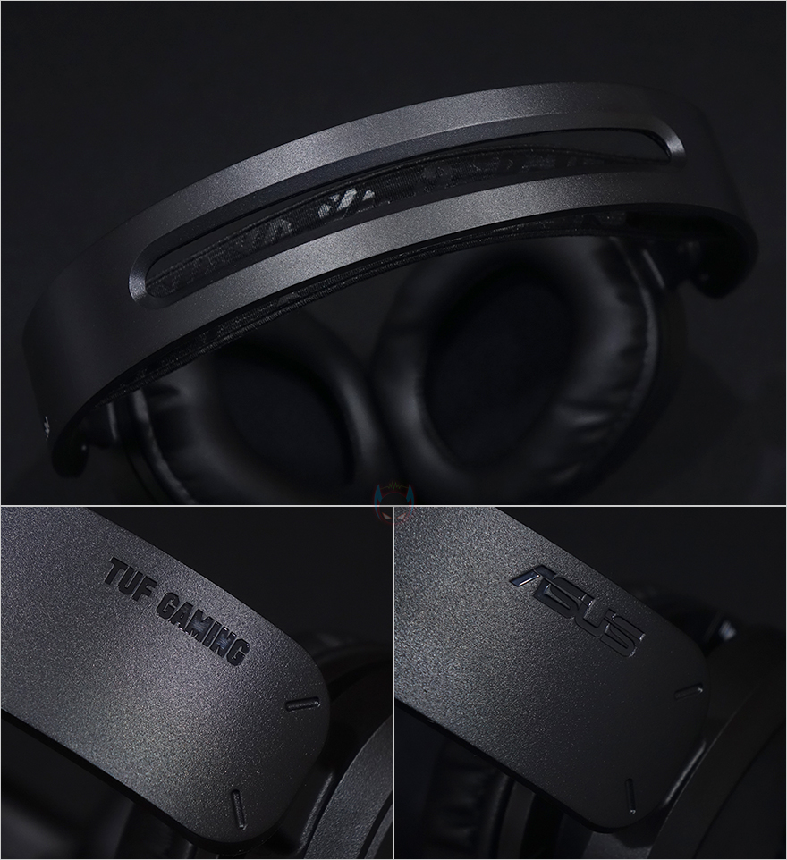 ASUS TUF Gaming H1 wireless 무선 게이밍 헤드셋 디자인을 살펴보면, 앞서 잠깐 언급했듯이 전체적인 디자인은 먼저 나온 TUF Gaming H3 wireless 모델과 유사합니다. 정확히는 좀 더 무게를 줄인 디자인이라 할 수 있는데, TUF Gaming H3 wireless 모델이 307g의 무게를 가졌던 반면, 이번 TUF Gaming H1 wireless 모델은 295g으로 줄어들었죠. 무게를 줄인 대표적인 디자인부분은 바로 헤드밴드부분으로 일반적인 통짜 프레임이 아닌 바깥쪽에는 고정 프레임을 안쪽에는 패브릭 스트랩으로 처리된 밴드형태로 일종의 서스펜션 형태를 가졌습니다. 고무밴드 같은형식이기때문에 사용자 착용에 따라 자동으로 밴드 길이가 늘어나겠습니다. 바깥쪽 고정 프레임은 가운데 길쭉한 홀 처리와 함께 양쪽에 ASUS와 TUF Gaming 로고를 처리해놨으며, 안쪽 패브릭 스트랩은 바깥쪽 방향에 로고 처리를 해놨습니다.