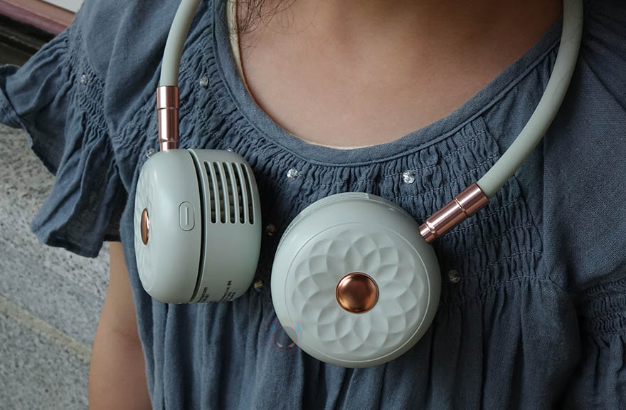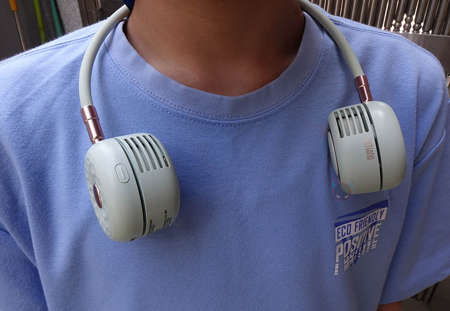 직접, 소싱 데이지 넥 선풍기를 사용해보면, 앞서 언급한대로 목에 거는 케이블이 플렉시블 케이블이기때문에, 사람 체형에 따라서 자유롭게 구부려서 자신에게 바람이 가장 잘 전달되는 형태로 착용을 맞출 수 있습니다. 선풍기도 360˚까지 회전이 가능하기때문에 목 주변으로 바람이 집중되게할수도 있고, 볼 주변으로까지 바람이 전달되게할수도 있죠. 물론, 어른부터 아이까지도 자유롭게 착용할 수 있습니다. 바람은 1단계에서도 충분히 시원함을 느낄정도로 강한 편이며, 2,000mAh 배터리를 내장하고 있어서, 1단계 사용시 최대 5시간, 3단계 사용시 최대 1시간을 사용할 수 있습니다.