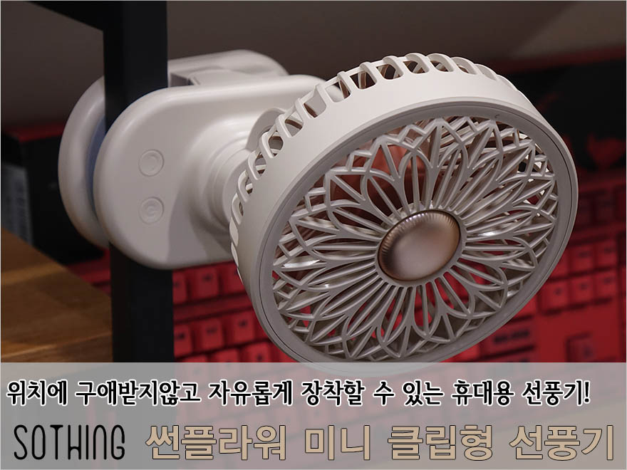 이제 본격적인 여름철이 시작되죠. 더워지는 날씨와 함께 냉방기기 제품에도 관심이 높아집니다. 특히, 요즘은 캠핑 같은 야외활동이 많아지면서, 휴대용 선풍기를 하나쯤 소지하고 있는 이용자들이 많죠. 그리고, 이제 휴대용 선풍기도 예전처럼 손에 쥐는 핸디형만 존재하는게 아니라 목에 거는 넥밴드, 벽 같은곳에 걸어서 사용할 수 있는 벽걸이 선풍기, 아무곳에나 쉽게 장착할 수 있는 클립형 선풍기 등 종류도 다양해졌습니다. 국내시장에서도 휴대용 선풍기하면 대표적인 브랜드라할 수 있는 소싱(sothing)에서도 이번에 클립형 선풍기를 출시했는데, 바로, 썬플라워 모델입니다. 그럼, 소싱의 썬플라워 클립형 선풍기를 한 번 살펴보도록 하죠.