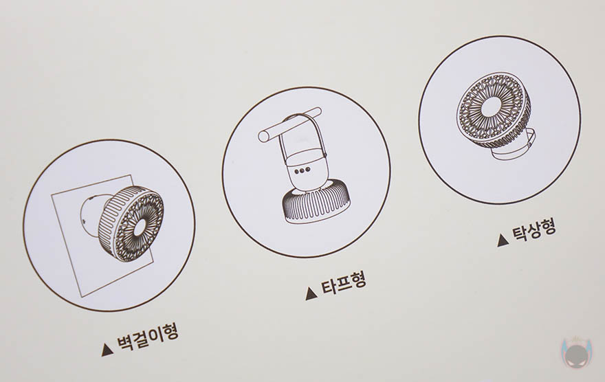 끝으로, 소싱 썬플라워 멀티 선풍기는 앞서 제품박스에서부터 언급했듯이, 3가지 사용법으로 이용할 수 있습니다. 테이블 같은 곳에 그냥 올려놓고 사용할 수 있는 스탠드형, 브라켓을 사용해서 벽에 고정해서 사용할 수 있는 벽걸이형, 그리고, 스트랩을 사용해서 줄이나 막대에 걸어서 사용할 수 있는 타프형까지. 실제로 사용해보면, 각도조절과 좌우회전이 가능하기때문에 어떤 용도로 사용해도 만족스럽습니다.