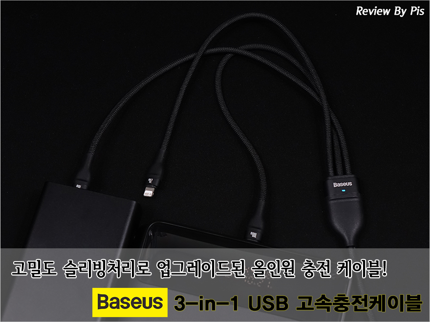 베이스어스(Baseus)의 최신 올인원 충전케이블인 3-in-1 충전케이블은 최대 100W 고속충전을 지원하기때문에, 노트북이나 스마트폰 같은 특정 제품의 고속충전이 필요할때 유용합니다. 뿐만아니라 애플용 라이트닝과 안드로이드/기타 전자제품에 사용되는 3가지 USB 인터페이스를 갖추고 있기때문에 다양한 제품을 동시에 충전할 수 있습니다. 특히, 애플용 제품과 다른 전자제품을 가지고 있는 이용자에겐 이런 3-in-1 충전케이블 하나쯤은 꼭 필요한 아이템이라 할 수 있죠. 여기에 고밀도 슬리빙까지 처리되어 있어서 케이블자체의 품질도 높고, 꼬임방지도 확실히 방지해줍니다. 최신 고속충전지원과 올인원 충전케이블이 필요했다면 베이스어스 3-in-1 충전케이블을 한 번 생각해보세요. 그럼, 이상으로 마치겠습니다.