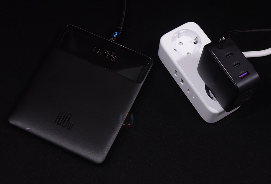 직접, UGREEN 100W GaN 고속충전기를 사용해보면, 일단 보조배터리를 통해 각 USB 포트의 고속충전을 확인해보는데 앞서 언급했듯이 USB Type-C 1번과 2번 포트는 최대 100W까지 지원합니다. 실제로 최대 65W 충전속도를 지원하는 보조배터리를 연결해봤는데, 근접속도로 충전되는 것을 확인할 수 있죠. 이번엔 최대 22.5W를 지원하는 USB Type-C 3번과 Type-A 포트에 각각 보조배터리를 연결해봤는데, 역시 근접속도로 충전되는 것을 확인할 수 있습니다. 참고로, 충전속도는 연결된 제품의 배터리 잔량에 따라 충전기에서 내장된 스마트 컨트롤-칩을 통해 최적의 전압 배분으로 전달되기때문에 속도차이는 항상 다를 수 있습니다.