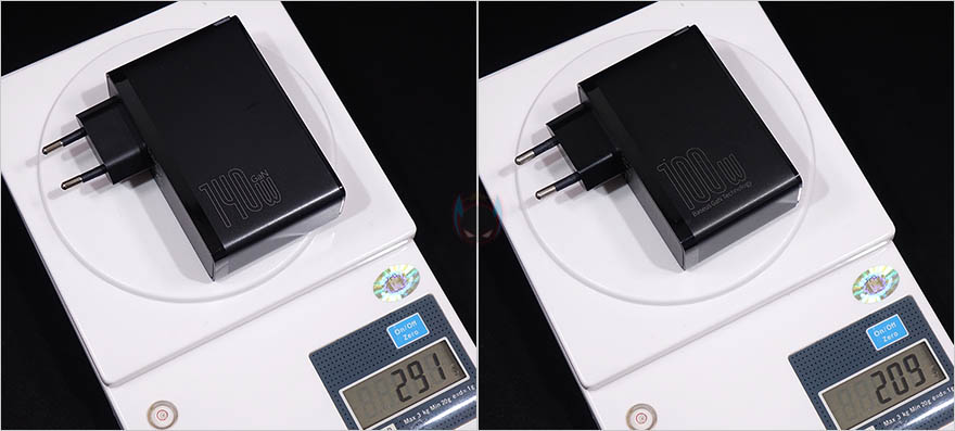 그럼, 본격적으로 베이스어스(Baseus) 140W GaN5 Pro 고속충전기를 살펴보는데, 앞서 언급했듯이 외형적인 디자인은 작년에 출시했던 100W GaN2 Pro와 거의 동일합니다. 단지, 크기가 좀 더 커졌죠. 커진 이유는 아무래도 좀 더 빠른 고속충전을 하기때문에 보호회로나 내부에 발열해결을 위한 쿨링기술이 더 강화되어야하기 때문이라 생각이 듭니다. 크기가 커졌기때문에 당연히 무게도 약 90g정도 더 무거워졌죠. 참고로, 이번 140W GaN5 Pro도 블랙과 화이트 2가지 색상으로 출시되었습니다.