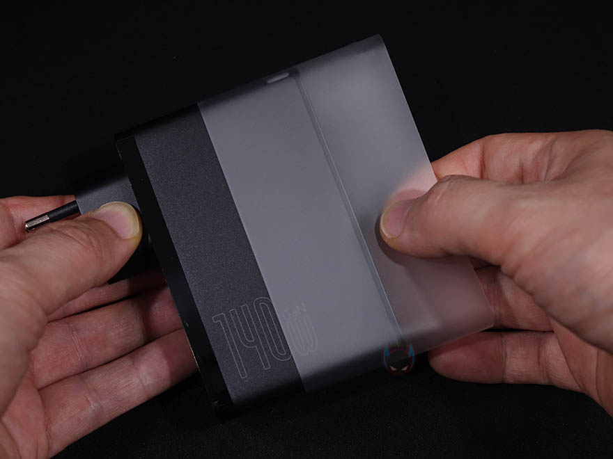 제품 포장은 이전 제품들과 마찬가지로 본제품인 충전기는 비닐 포장으로 되어있으며, 제품구성도 100W GaN2 Pro와 동일하게 충전기, USB 케이블, 제품설명서 및 보증서, 스티커 구성으로 되어 있습니다. 물론, 비닐포장을 벗기면, 충전기 자체에도 한번 더 보호비닐이 씌워져 있죠.