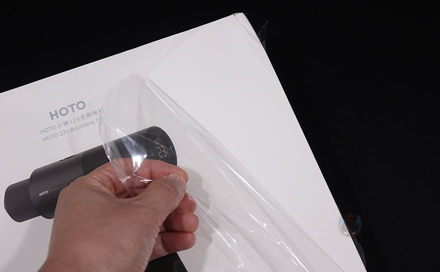 시작에서도 잠깐 언급했지만, HOTO(호토)가 유명해진 이유 중 하나는 바로 디자인부분입니다. 쉽게 말해, 기존의 투박한 공구 디자인을 벗어난 디자인을 가졌죠. 그래서, 12V Brushless Drill(브러시리스 드릴) 제품박스부터 공구 제품답지 않게 박스형 포장을 하고 있으며, 박스 전체 비닐 밀봉처리도 되어있습니다. 박스 전면에는 모델명과 함께 제품 이미지를 담고 있어서 디자인을 미리 간접적으로 확인할 수 있는데, 한눈에 봐도 기존의 공구 제품들과 확연하게 다른 디자인이라는걸 알 수 있죠.