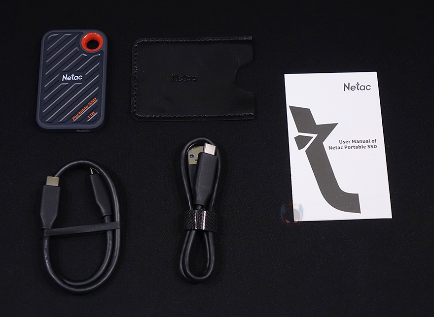 박스를 열어보면, 포장은 외부 충격방지와 흔들림방지를 위해 포장-틀에 끼운 형태이며, 제품 구성은 ZX20 외장 SSD, 전용 파우치, 2개의 USB 데이터 케이블(Data cable), 제품설명서로 이루어져 있는데, 전용 파우치(exclusive pouch)경우 가죽(leather) 소재로 로고까지 새겨놨는데, 경쟁사 제품들에선 흔히 볼 수 없는 제공이라 이 제품에 상당히 신경 썼다는 것을 알 수 있습니다.
