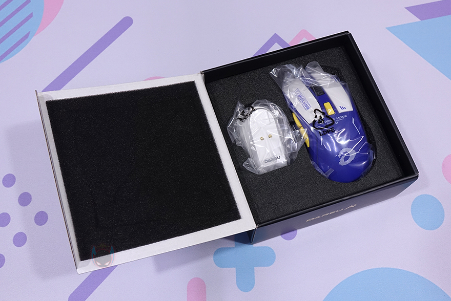 포장은 겉표지를 슬라이드 방식으로 벗기면 내부에 속박스가 적용된 형태로 속박스를 열어보면, 외부 충격방지를 위해 스펀지 완충재 사용으로 제품을 고정하고 있습니다. 물론, 마우스와 전용 충전독의 기본 포장은 비닐포장으로 되어있죠. 제품 구성은 A950 마우스, 제품설명서, 전용 충전독, USB 전원 케이블, 로고 스티커, 기본 버튼과 측면에 그립 보강을 위한 패드 제공으로 이루어져 있습니다.