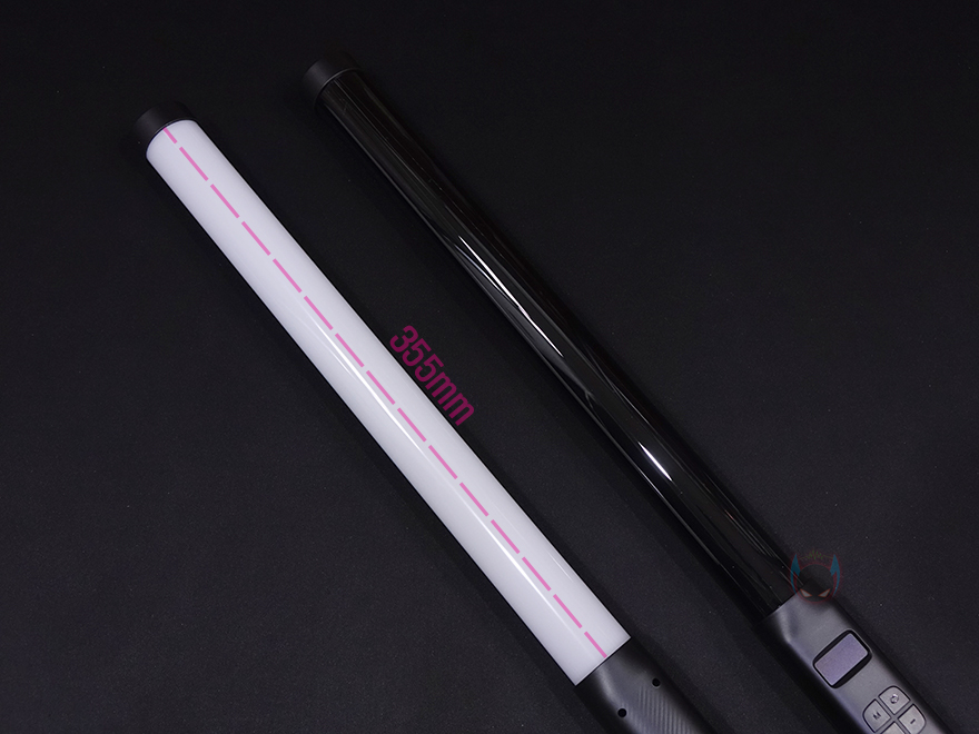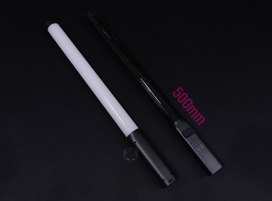 그럼, Ulanzi(울란지) VL119 RGB 조명을 살펴보는데, 한눈에 봐로 광선검처럼 긴 스틱형태의 디자인을 확인할 수 있습니다. 앞서 만났던 VL110이 약 240mm 길이였는데, VL119는 이보다 2배 이상 긴 500mm 길이를 가지고 있죠. 물론, 손잡이 부분을 제외한 조명부분 길이만 따져도 355mm로 VL110보다 깁니다. 재질을 플라스틱 소재이기 때문에 무겁지 않고, 내부에는 RGB LED, Yellow LED, White LED가 각각 38개씩 내장되어 있죠.