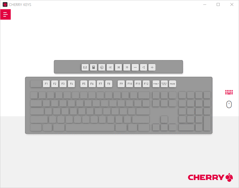 그리고, KC200 MX 키보드는 앞서 확인했듯이 기본적으로는 숫자-키패드 위에 배치된 4개의 독립실행 부가기능 키가 부가기능의 전부입니다. 하지만, Cherry Keys 프로그램을 통해 F숫자키 나열에 키들을 부가 기능으로 추가 설정할 수 있죠. 쉽게 말해, 프로그램을 통해 다른 키보드에서 흔히 보는 F숫자키 부가 기능들을 그대로 적용할 수 있다라는겁니다. 참고로 Cherry Keys 프로그램은 피씨디렉트 홈페이지에서 다운로드 받을 수 있습니다.