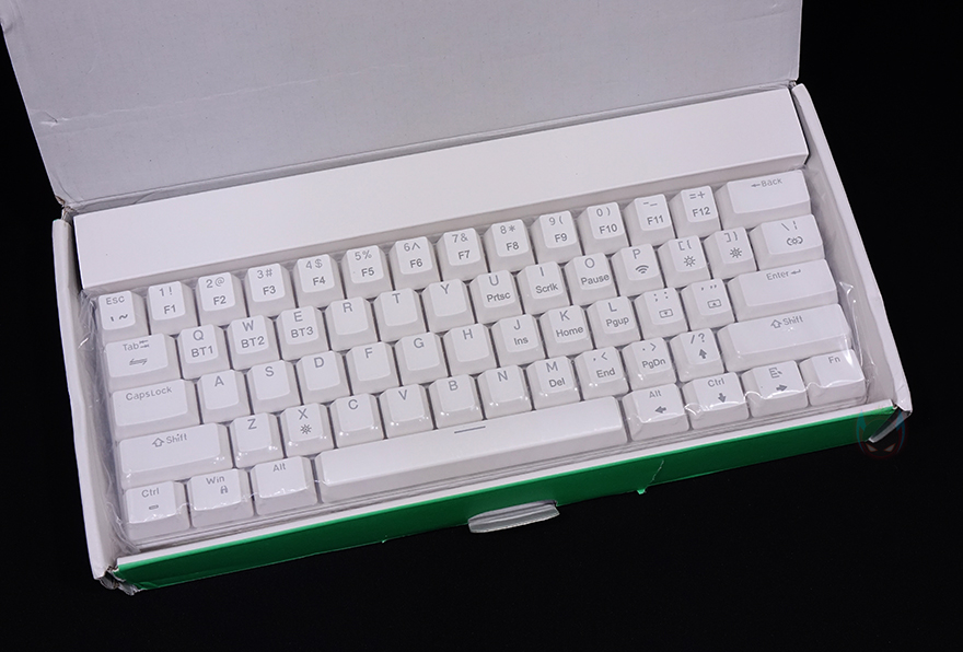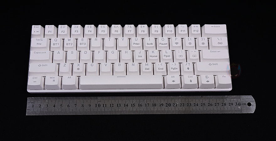 Blitzwolf BW-KB0 키보드를 본격적으로 살펴보면, 색상은 화이트와 블랙 2가지 색상으로 출시되었으며, 풀-배열 키보드 기준에서 딱 영문 자판 및 엔터키가 배치된 부분만 그대로 드러낸 형태의 총 61 키 미니키보드 형태입니다. 물론, 다른 미니키보드처럼 한쪽에 방향키를 담고 있죠. 그리고, 미니키보드인 만큼 길이도 약 29cm로 짧으며, 무게도 약 570g으로 키보드에선 비교적 가벼운 편에 속합니다.