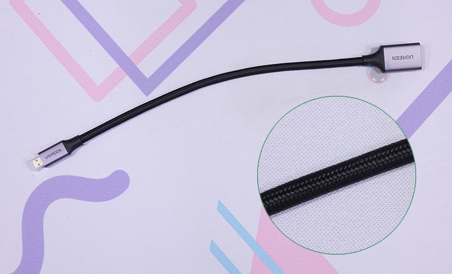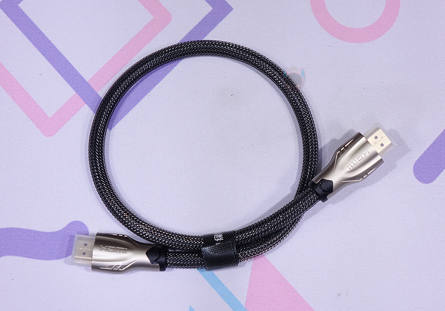그리고, 또하나의 HDMI 케이블은 마이크로 HDMI 어댑터 제품으로 길이는 25cm이며, 꼬임방지를 위해 직조케이블형태로 슬리빙처리를 했습니다. 또한 , 어댑터 제품답게 한쪽에는 기본 HDMI Type-A와 연결되는 포트가 적용되었고, 반대쪽에는 카메라 같은 장치에 사용되는 마이크로 HDMI 인터페이스를 갖추고 있죠.