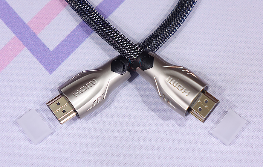 먼저, 양쪽 모두 HDMI Type-A 인터페이스를 갖춘 기본적인 HDMI 케이블부터 살펴보면, 유그린에서 이런 기본 HDMI 케이블이 꽤 많지만, 고급형 모델 같은경우에는 재질부터가 다릅니다. 일단, 케이블 슬리빙처리는 나일론 재질로 했으며, 전선규격도 30AWG로 일반적인 HDMI 케이블 굵기보다 훨씬 굵죠. 길이는 50cm부터 최대 3m까지 있으며, HDMI 인터페이스 케이스에도 고급형답게 아연 합금(Zinc Alloy) 소재를 사용해 내구성을 높였습니다. 당연히 인터페이스부분도 금도금으로 처리되어 있죠.