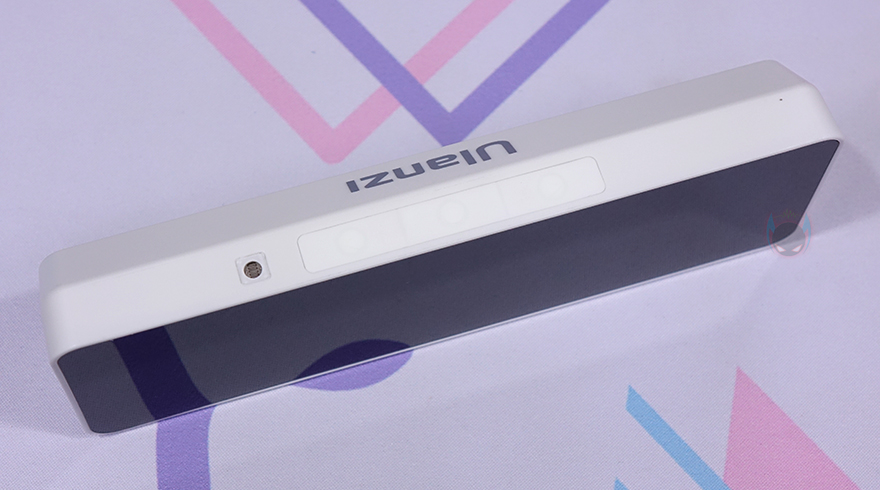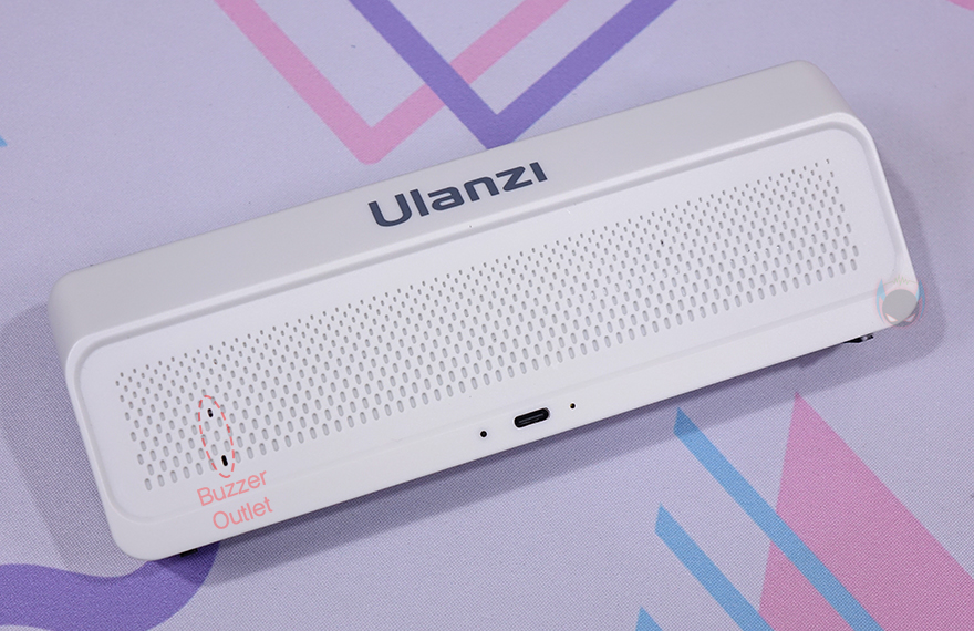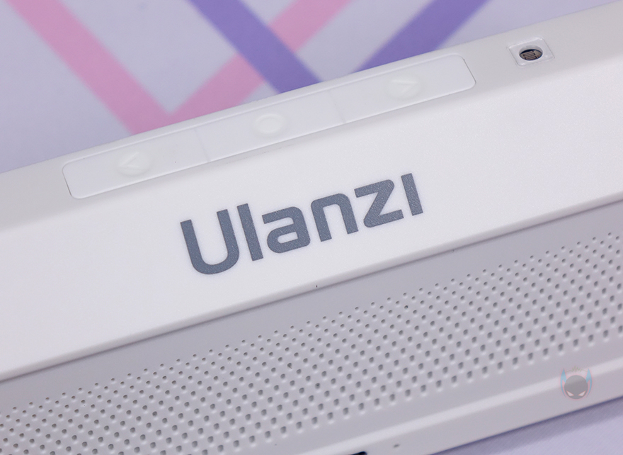 물론, 전면 전체가 디스플레이를 차지하고 있는 것은 아닙니다. 쉽게 말해 디스플레이 테두리 베젤이 적용되어 있다라는거죠. 대각선 방향기준으로 화면을 보여주는 영역은 약 182mm로 7.1인치 크기정도입니다. 그리고, 측면에서 보면 후면 윗부분이 경사도를 가지고 있죠. 상단에는 왼쪽(Left)/OK/오른쪽(Right) 표시로 버튼이 3개 배치되어 있으며, 왼쪽 버튼 왼쪽에는 주변광 센서(Amibient Light Sensor)도 배치되어 있습니다. 그리고, 그대로 뒤쪽으로는 Ulanzi 로고(Logo)를 새겨놨죠.