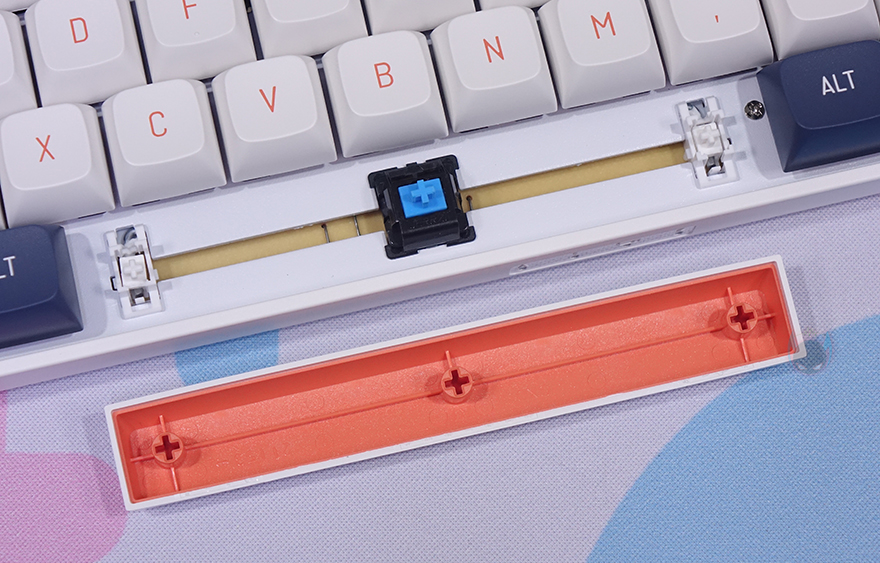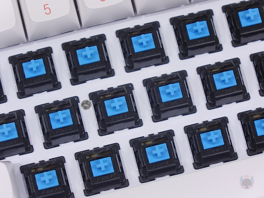 그리고, 스위치는 A100과 동일하게 A108에서도 JERRZI 스위치가 적용되었으며, 역시 청축과 황축 2가지로만 출시되었습니다. 또한, 스위치 분리가 가능한 핫-스왑(hot-swap) 방식 역시 그대로 유지하고 있는데, A100과 달리 A108에선 5pin 홈을 가지고 있어서 3pin과 5pin 스위치 모두 호환이 가능합니다. 또한, 스페이스-바 같은 키들의 스테빌라이저도 체리식으로 적용하고 있죠.