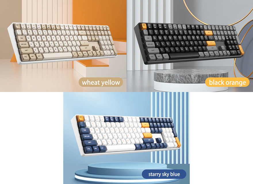 59.62US $ 10% OFF|Aigo A108 Gaming Mechanical Keyboard 2.4G Wireless USB Type c Wired Yellow Switch 110 Key Hot Swap Rechargeabl