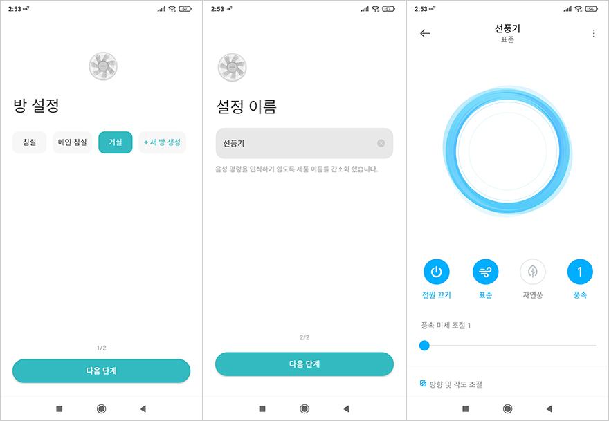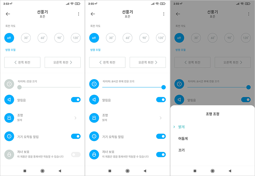 스마트미 2S 무선 선풍기는 샤오미 Mi 홈(Home)과 어플 연동이 되는데, 스마트폰에 Mi 홈 어플이 설치된 상황에서 선풍기 전원을 켜면 어플에서 자동으로 기기추가 메시지가 나옵니다. 그럼 안내에 따라서 진행을 하면 되고, 최종적으로 연결이 되면 어플에서 선풍기의 작동 상태부터 풍량조절, 회전, 타이머, 알림음, LED 조명밝기, 기기오작동 알림, 자녀보호 설정을 할 수 있습니다. 리모컨에 없던 기능들이 훨씬 많죠. 특히, 풍량조절 같은경우에는 어플에서 세밀하게 100단계로 조절할 수 있으며, 회전각도도 손쉽게 설정할 수 있고, 타이머도 최대 8시간까지 설정할 수 있습니다. 물론, Mi 홈이 구글 어시스턴트와도 연결 가능하기 때문에 구글 음성으로도 선풍기 실행을 할 수 있습니다.