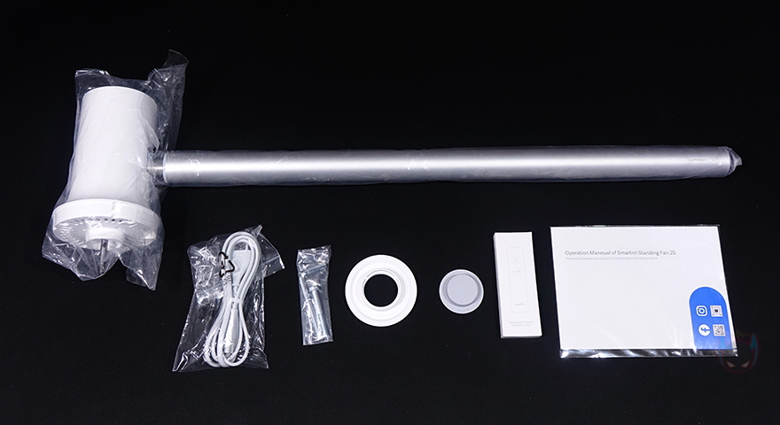 박스를 열어보면, 제품 조립 전 구성품들로 포장된 것을 확인할 수 있는데, 모두 비닐 포장으로 되어 분실이 되지않도록 했으며, 조립 전 구성품에는 선풍기의 팬, 받침대 베이스, 모터&스탠드, 전원케이블, 고정 나사들, 팬 커버 고정 노브, 팬 날개 고정 노브, 리모컨, 제품설명서로 이루어져 있습니다.