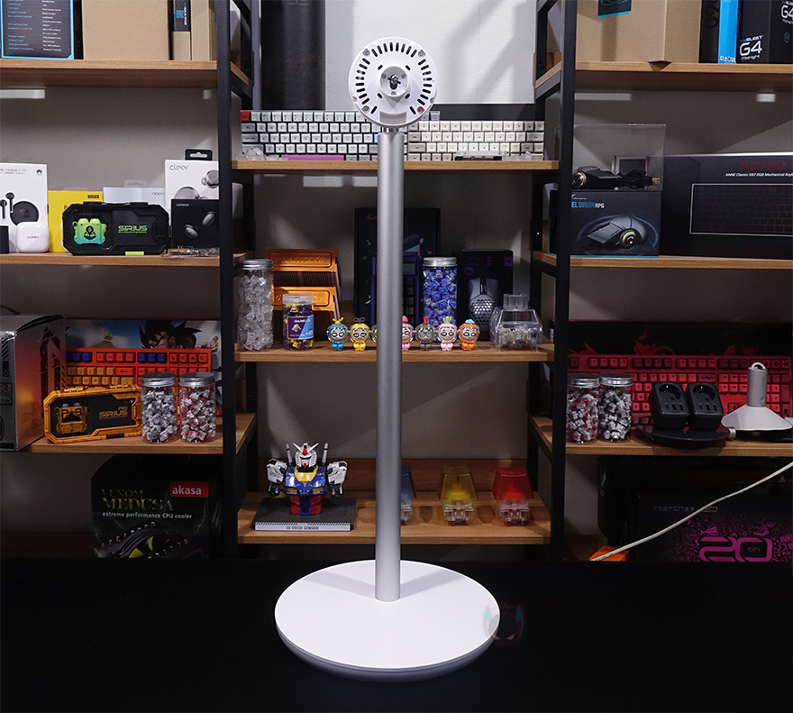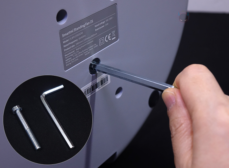 사용 전에 조리부터 해야겠죠. 일단 받침대 역할을 하는 베이스는 원형 디자인으로 지름 330mm를 가지고 있으며, 밑바닥에는 미끄럼방지 고무 패드가 5개 부착되어 있습니다. 그리고, 후면방향에는 전원 케이블과 연결되는 DC 포트가 있죠. 베이스에는 모터&스탠드를 결합해줘야 하는데, 모터&스탠드 봉의 구멍과 베이스의 홈 방향을 맞춰서 끼워주고, 제공해 주는 렌치와 육각 볼트로 고정시켜 주면 됩니다. 초보자도 쉽게 조립할 수 있는 만큼 큰 어려움이 없습니다.