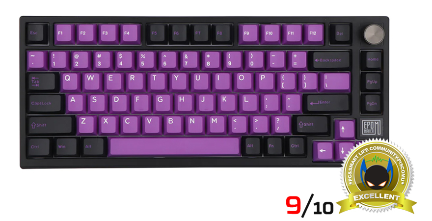 본격적으로 EPOMAKER TH80 SE 키보드를 살펴보면, 가장 먼저 눈에 띄는 점은 색상입니다. 기존의 TH80 series 제품들은 화이트&그레이(white&gray) 계열이었다면, 이번 TH80 SE는 블랙&퍼플(black&purple) 색상으로 적용되었죠. 물론, 약간의 배열 차이도 있습니다. 1개가 더 많죠. 앞서 시작에서 언급했듯이 SE가 스페셜에디션(special-edition) 약자라 문구처럼 기존 제품과는 색상부터 차별을 주고 있습니다. 그리고, 무게는 약 1kg으로 미니 키보드지만 꽤 묵직하죠. 그 이유는 이 제품 역시 가스켓 마운트(Gasket mount) 방식으로 내부에 이중 흡음재(EVA bottom foam, Silicone interlayer foam)와 스위치 패드(Poron foam switch pad)까지 적용되었기 때문입니다.