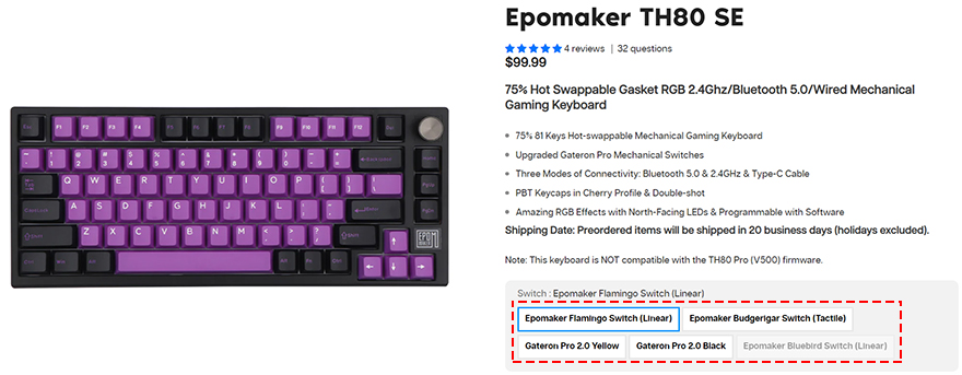 85.99US $ 14% OFF|EPOMAKER TH80 SE Gasket 75% Mechanical Keyboard NKRO Hot Swappable North facing RGB 2.4Ghz/Bluetooth 5.0/Wired