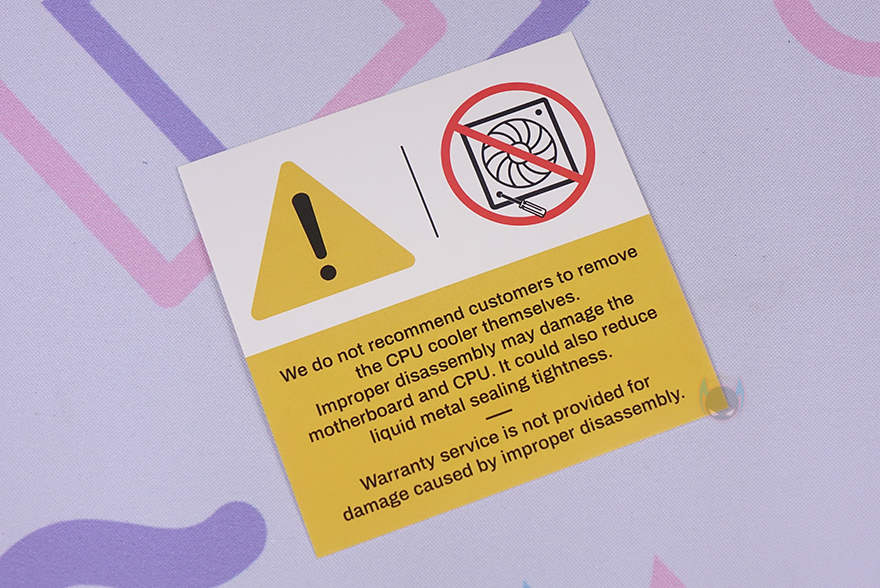 그리고, 앞서 구성품에서 주의 안내 큐카드를 볼 수 있었는데, 바로 CPU 발열을 해결해주는 쿨러를 분해하지 말라는 내용입니다. 이런 주의 안내 문구를 제공하는 이유는 바로 UM773 Lite에 적용된 CPU AMD Ryzen 7 7735HS의 발열 해결을 위해 써멀 컴파운드를 리퀴드 메탈(Liquid Metal) 소재로 도포 했기 때문에, 산화알루미늄 소재의 일반적인 써멀 컴파운드와 달리 리퀴드 메탈은 말 그대로 금속 액체라서 잘못 분리했을 시 부품의 훼손 문제가 발생할 수 있습니다. 따라서, 사용자는 임의로 쿨러 해제를 하면 안 됩니다.