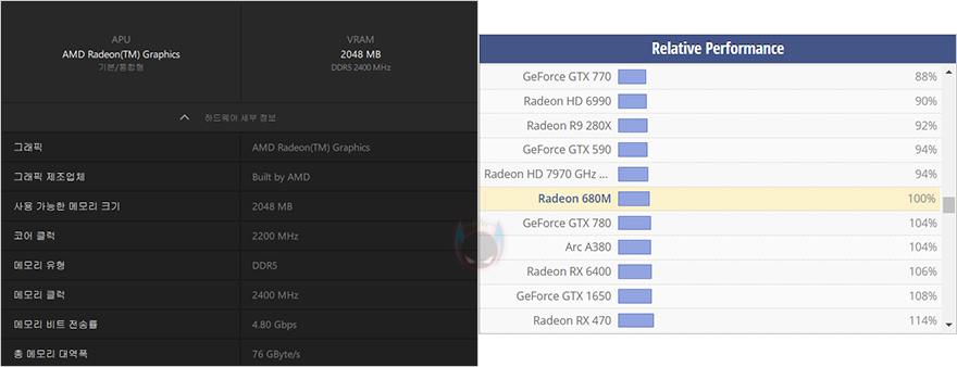 이번에는 UM773 Lite 미니 PC의 그래픽 다시 말해 Ryzen 7 7735HS CPU에 탑재된 Radeon 680M 내장 그래픽 성능을 확인해 보는데, RDNA2 기반의 내장 그래픽으로 기존의 Vega 시리즈보다는 앞서는 스펙을 가지고 있죠. 물론, APU의 내장 그래픽은 경쟁사 인텔보다도 항상 앞서는 게 AMD이기도 하죠. 실제로 QHD(2560x1440) 해상도에서 롤(league of legends)이나 피파(FIFA) 같은 국민적인 게임들은 60 프레임 고정이거나 그 이상으로 상당히 원활하게 플레이할 수 있습니다. 또한, 대전 액션이나 아케이드 같은 그래픽 표현이 다소 높은 게임들도 일부에 따라서 플레이를 하는데 큰 문제가 없죠. 참고로 아래 게임 플레이 동영상들은 녹화 프로그램으로 프레임 저하가 좀 발생했기 때문에, 실제 플레이의 프레임은 이보다 10~20 프레임 더 높다고 보면 됩니다.
