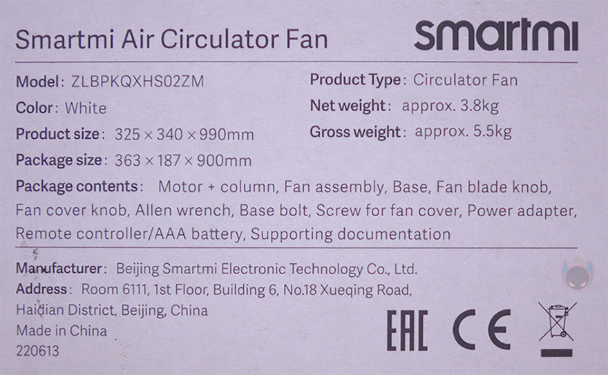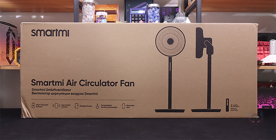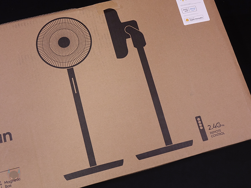 써큘레이터 역시 선풍기 제품군의 하나이기때문에, 제품박스는 그동안 스마트미 무선 선풍기의 제품들처럼 깁니다. 박스 전면에는 모델명과 함께 제품 디자인을 단색 그림으로 담고 있는데, 기존 Fan 2S나 Fan 3 모델과는 조금 다르다는 걸 미리 짐작할 수 있죠. 그리고, 모델명 아래에는 제품의 주요 특징으로 대용량 배터리, 어플 지원, 다양한 모드, 온도 감지, 자석방식 충전기를 언급하고 있습니다. 물론, 그동안의 스마트미 제품들처럼 이 써큘레이터 제품 역시 구글 어시스턴트(Google Assistant), 아마존 알렉사(Amazon Alexa), 애플 홈키트(Apple HomeKit) 어플 연동도 완벽하게 지원해주고 있죠. 그리고, 박스 측면에는 제품의 기본 사양 표기를 해놨으며, 패키지 구입 후 이동시 편의를 위해 손잡이도 기본 적용되어 있습니다.