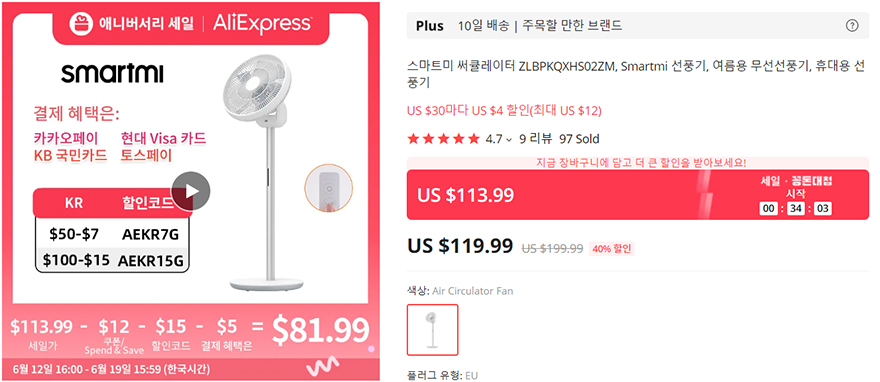여름철이 시작되면서, 점점 무더워지는 날씨에 에어컨을 필수입니다. 그리고, 이런 에어컨을 조금이라도 좀 더 적은 전력소모로 오랫동안 실내 공기를 유지하기 위해선 써큘레이터를 사용해야 하죠. 스마트미 써큘레이터 선풍기(Smartmi Circulator Fan)는 이런 역할을 충분히 해줄 수 있는 제품이며, 에어컨을 사용하지 않을 때는 기본적인 선풍기 역할로도 충분히 잘 발휘하죠. 상하좌우 회전 모두 가능하고, 리모컨 기본제공에 모터 후면에 버튼 적용, 어플 연동까지 스마트 가전제품으로 작동법을 연결할 수 있는 방법 3가지 모두 지원하기 때문에 사용자가 편하게 자유롭게 사용할 수 있습니다. 또한, 기존 자사 무선 선풍기 제품들처럼 충전케이블은 삽입하는 게 아니라 자석방식으로 쉽게 탈부착하는 방식이라 써큘레이터 선풍기를 자유롭게 이동시킬 때 케이블 불편함이 전혀 없죠. 무엇보다 이 제품 역시 알리익스프레스 스마트미 공식스토어에서 매월 프로모션이 있을 때마다 할인행사를 진행하기 때문에 행사 때 구입하면 확실히 다른 제품들보다 저렴해서 가성비 제품이라 할 수 있습니다. 올여름 무더위 날씨에 써큘레이터 구입계획이 있었다면, 스마트미 써큘레이터 선풍기(Smartmi Circulator Fan)를 추천합니다.
