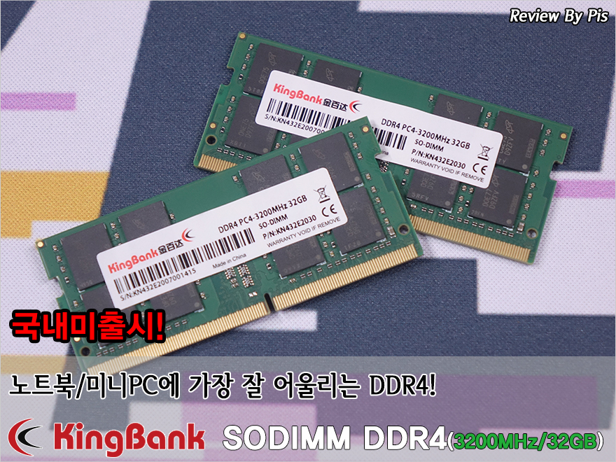 일반적으로 메모리(RAM)는 PC에서 크게 데스크탑용과 노트북용으로 나뉘고 있죠. 데스크탑PC는 흔히 말하는 DIMM 계열이고, 노트북은 이보다 길이가 짧은 SODIMM 계열입니다. 데스크탑PC 메모리경우 최근 DDR5 시대가 열리면서 DDR5 메모리 제품들이 많이 나오고 있는데, 노트북은 최근에 SODIMM DDR5가 지원되기 시작했죠. 그래서, 아직은 SODIMM DDR4 메모리가 가장 많이 사용되고 있는데, 메모리와 스토리지 전문업체 KingBank(https://www.kingbank.com/) 역시 SODIMM 메모리 제품군을 갖추고 있습니다. 그래서, 이번 시간에는 KingBank의 SODIMM DDR4 최고사양인 3200MHz 32GB 메모리를 한 번 살펴볼까 합니다. 그럼,