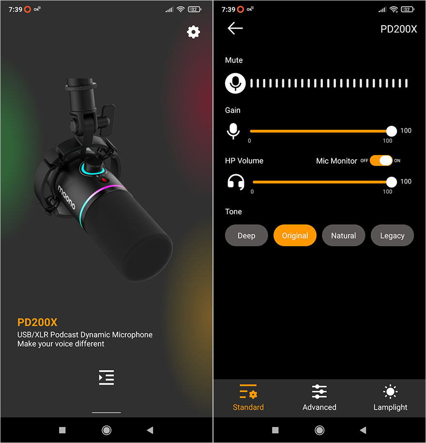 직접 PD200X 마이크를 사용해 보면, 단일 지향성 마이크답게 전면에서 수음이 가장 좋으며, 마이크 위치도 설명서대로 상단 부분에 입 위치를 맞추는 게 가장 선명합니다. 가격대비 마이크 품질은 일반 소비자들이 접했을 때 충분히 만족스럽다 할 수 있으며, 좀 더 음질에 신경을 쓰고 싶다면, 공용 프로그램인 Maono Link(https://www.maono.com/pages/maono-link-software)를 설치해서 사용하면 됩니다. PD400X 마이크 때부터 제공되기 시작한 Maono Link는 PC버전뿐만 아니라 모바일버전까지 사용할 수 있는데, 프로그램 설치 후 PD200X를 연결해 사용해 보면, 마이크 게인과 헤드폰 볼륨조절뿐만 아니라 톤(Tone) 변경, EQ, 리미터(Limiter), 컴프레서(Compressor) 기능까지 마이크에선 다룰 수 없었던 설정까지 다룰 수 있으며, RGB 조명효과도 프로그램에서 추가로 밝기조절을 할 수 있습니다.