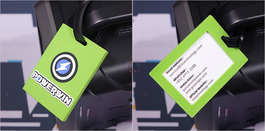 또한, 개봉시 손잡이 부분에는 태그(Tag)가 달려있는데, 고무커버에는 로고(Logo)가 새겨져 있으며, 후면에 제조사 연락망 정보가 표기되어 있습니다. 물론, 네임(Name) 태그라서 분리도 가능하고, 사용자 이름을 적어 종이를 바꿀 수 있습니다.