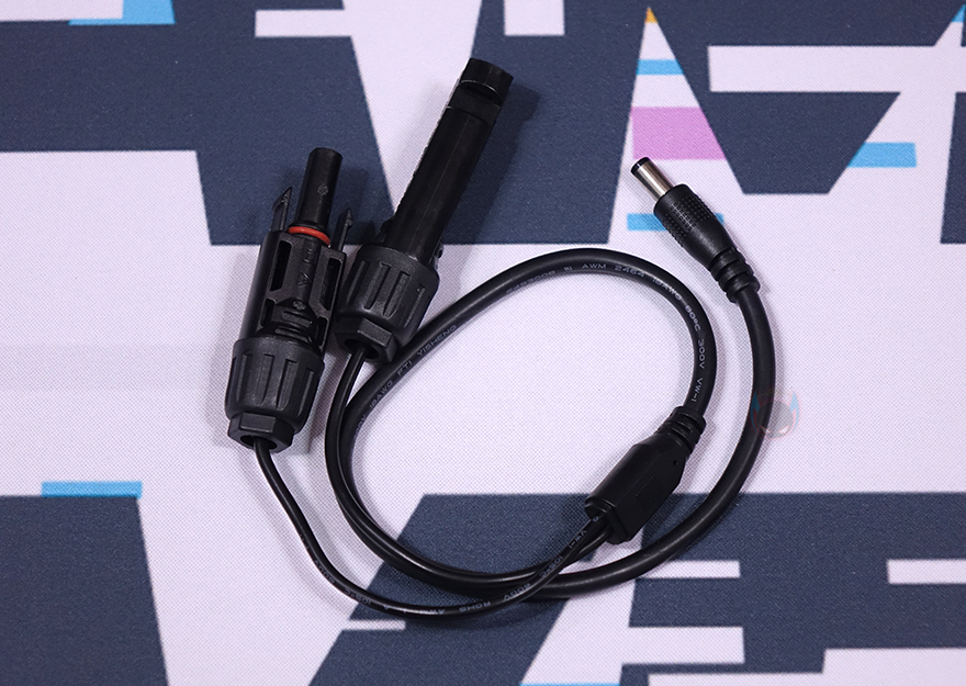 끝으로, 기본제공되는 충전 케이블을 살펴보면, AC 어댑터 및 전원케이블은 최대 60W 출력을 가지고 있으며, 차량용 시거잭 충전 케이블은 약 1m 길이, 태양광 패널과 연결되는 PV to DC 5521 어댑터 케이블과 USB Type-C to C 케이블은 각각 50cm, 80cm 길이를 가졌습니다.
