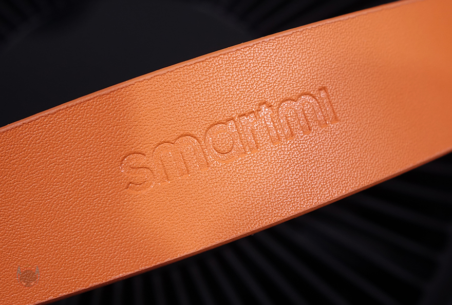 그리고, 방안에 놓고 사용하는 공기청정기 크기인만큼 이동시 편하도록 상단에는 이동식 손잡이(Handle)도 적용되어 있는데, 재질은 인조가죽이며 바깥쪽에는 음각으로 로고(Logo)도 새겨놨습니다. 물론, 손잡이 고정도 고리 방식이라 앞뒤로 자유롭게 넘길 수 있죠. 그리고, 상단에는 아래에서 흡입된 공기가 정화되어서 위로 배출되도록 팬 그릴처럼 배출구가 처리되어 있으며, 가운데는 터치방식으로 조작 사용할 수 있게 디스플레이가 배치되어 있는데, 개봉 시에는 보호비닐이 부착되어 있습니다. 밝은 곳에서 보면, 전원을 켜지 않은 상태에서도 표시되는 영역구간을 확인할 수 있죠.