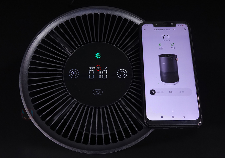 앞서 시작에서도 잠깐 언급했지만, 지금까지 출시된 모든 스마트미 제품들은 어플(App) 연동을 지원합니다. 특히, P1 공기청정기 같은 경우 자사 어플 Smartmi Link에서 연동이 되며, Smartmi Link을 구글 어시스턴트(Google Assistant)/애플 홈(Apple Home)/아마존 알렉사(Amazon Alexa)와 연결해 음성 서비스로 작동시킬 수도 있죠. Smartmi Link에 P1 공기청정기 연동은 간단합니다. P1 공기청정기 전원을 켜면 자동으로 페어링모드가 시작되고, Smartmi Link을 실행하면 자동으로 기기 검색을 하거나 수동으로 기기 검색해서 P1 공기청정기가 검색되면, 선택한 후 안내에 따라 진행하면 됩니다. 어플과 연동이 되면 디스플레이 화면 PM2.5 표시 바로 오른쪽에 WiFi 아이콘이 고정 점등된 것을 확인할 수 있죠. 참고로 무선 WiFi 연결은 기존 제품들과 마찬가지로 2.4G로만 연결됩니다.