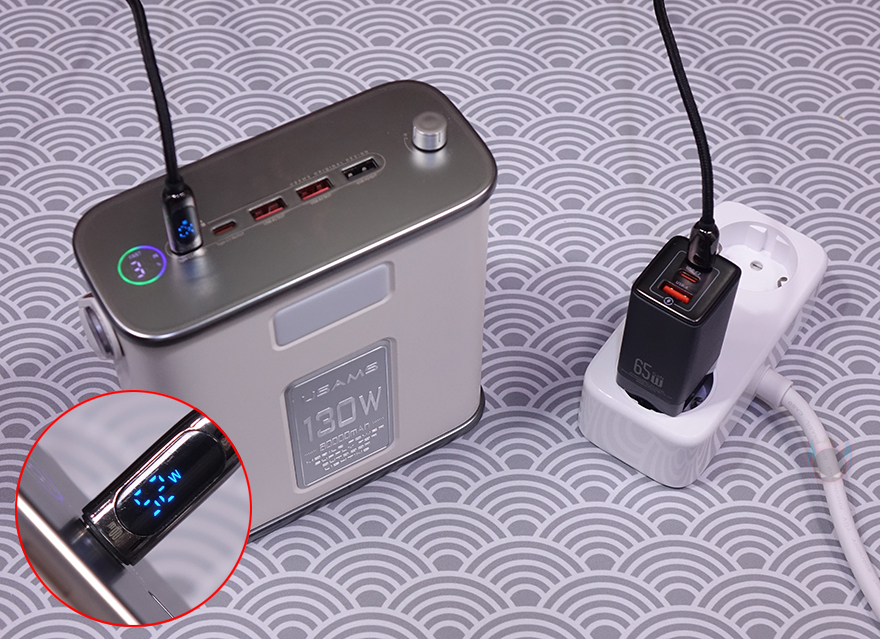 직접, 유삼스(USAMS) 65W 고속충전기 US-CC180을 사용해보면, 충전할 기기의 배터리 잔량에 따라서 고속충전기의 출력속도는 항상 달라지는데, 그래도, 65W 고속충전기답게 60W 근접으로 출력되는 것을 확인할 수 있습니다. 또한, 앞서 언급했듯이 Type-C와 A 모두 각각 60~65W를 출력하기때문에, 싱글로 사용할 때는 어느 포트를 사용해도 만족스럽다라는거죠. 3개의 포트를 갖추고 있기때문에 스마트폰, 보조배터리, 노트북 등 다양한 제품은 동시에 사용해도 되고, 슬림한 두께를 가졌기때문에 콘센트 자리차지도 없고 간섭도 없습니다.