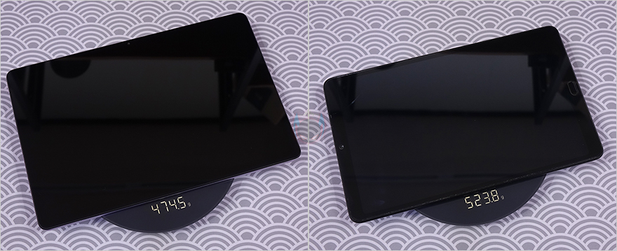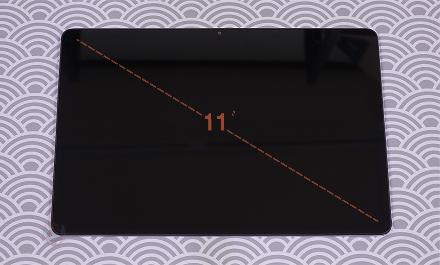 포장재를 벗겨서 본격적으로 샤오미 레드미 패드 SE(Redmi Pad SE) 태블릿PC를 살펴보면, 앞서 잠깐 언급했듯이 화면 크기는 11인치입니다. 디스플레이는 LCD이며, 레드미 패드 SE와 가장 비슷한 사양이었던 미패드 4 플러스와 크기 비교를 해보면, 10.1인치와 꽤 차이가 나는 것을 눈으로도 쉽게 확인되죠. 그리고, 무게는 레드미 패드 SE가 50g 정도 더 가벼운 것도 확인할 수 있습니다. 쉽게 정리해, 화면은 더 커지고, 무게는 더 가벼워진 거죠. 참고로, 보호필름은 부착되어 있지 않습니다.