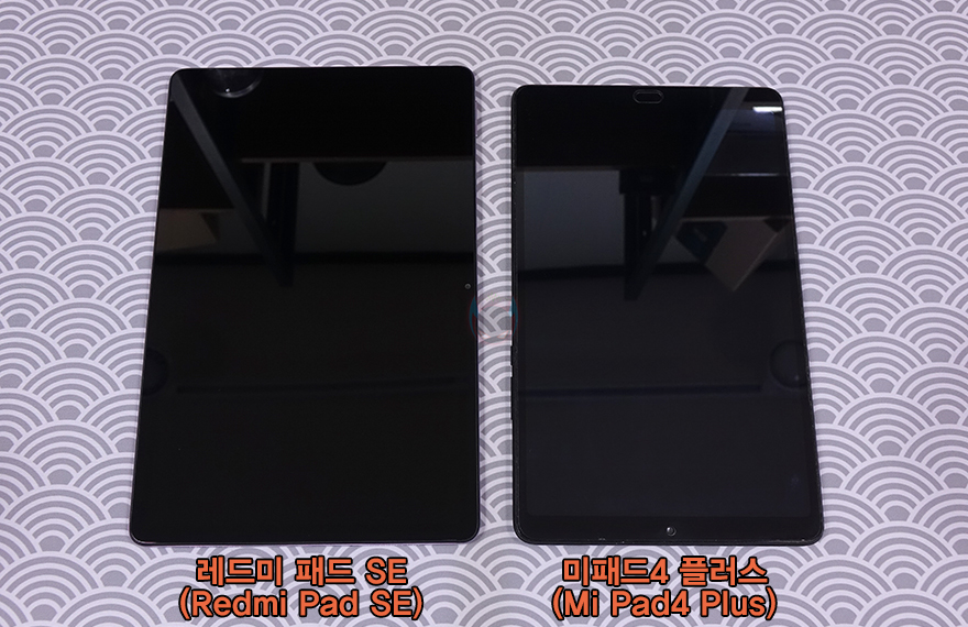 직접, 샤오미 레드미 패드 SE(Redmi Pad SE) 태블릿PC를 사용해 보면, 처음 사용할 때는 전원을 켜서 안내에 따라 기본 설정을 진행해야 합니다. 글로벌버전으로 출시되었기 때문에 당연히 한국어가 기본 포함되어 있어서 진행에 어려움은 없습니다. 그리고, 인터페이스는 안드로이드 13 버전 기반의 샤오미 태블릿 PC 전용 UI인 MIUI 14 Pad로 적용되어 있죠. 앞서 비교했던 가장 비슷한 사양의 미패드 4 플러스와 비교해 봐도 레드미 패드 SE는 지문인식 같은 장치가 없어졌기 때문에 화면 베젤차이도 확연하게 납니다. 참고로, 화면 해상도는 동일하게 1200x1920(FHD+)입니다.