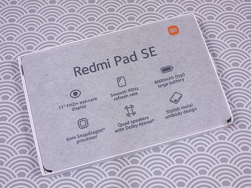 박스에는 씰(seal)이 부착되어 있기때문에 씰을 제거하고 박스를 열어보면, 레드미 패드 SE(Redmi Pad SE) 태블릿 PC는 부직포 같은 포장재에 포장된 것을 바로 확인할 수 있으며, 포장재에도 방금 언급했던 주요 특징 외에 추가로 메탈 유니바디 디자인 표기를 확인할 수 있습니다. 그리고, 태블릿 PC 포장 아래공간에는 나머지 구성품들이 수납되어 있죠. 제품 구성은 레드미 패드 SE 태블릿 PC, 충전어댑터, 충전케이블, 카드슬롯 핀, 제품설명서, 보증서로 이루어져 있습니다.
