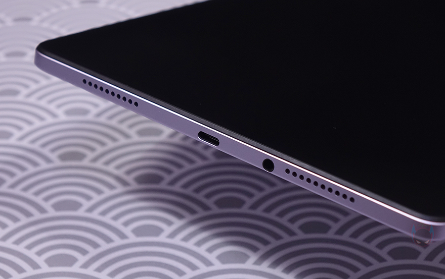 전면 카메라 위치 기준으로 카메라 윗부분 측면 프레임에는 볼륨조절(Volume control) 버튼과 마이크, TF카드 슬롯이 배치되어있으며, 제공되는 카드슬롯 핀으로 슬롯을 빼내보면, TF카드 1개를 장착할 수 있는데, 최대 1TB 용량까지 지원합니다. 그리고, 좌우 양쪽 측면에는 앞서 주요 특징 표기에서 언급했던 돌비 애트모스 지원의 쿼드 스피커가 양쪽에 각각 2개씩 나뉘어서 내장되어 있으며, 왼쪽 측면에는 전원버튼, 오른쪽 측면에는 충전케이블과 연결되는 USB Type-C 포트와 3.5mm 이어폰-잭이 적용되어 있죠. 끝으로, 기본 제공되는 충전어댑터는 220V 플러그에 USB Type-A 포트를 갖췄고, 충전 전력은 최대 10W입니다. 개인적으로 이 제품에 가장 아쉬운 부분이기도 합니다. 5년 전에 나온 미패드 4 플러스와 동일한 충전속도이기때문이죠. 그리고, 충전케이블은 약 1m 길이에 충전어댑터에 맞춰 USB Type-A to C 인터페이스를 가지고 있죠.