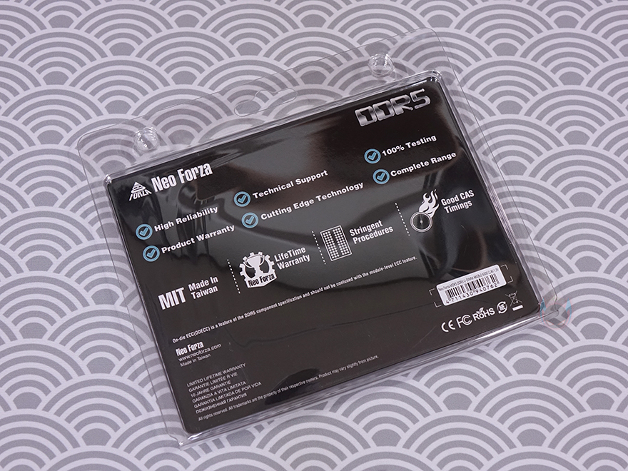 또한, 패키지 후면에는 간략하게 주요 특징을 표기해놨는데, 높은 신뢰성, 기술지원, 100% 테스트과정, 제품보증, 최첨단 기술, 폭넓은 호환성 등 주로 제품보다는 브랜드가 추구하는 특징을 표기해 놨습니다. 물론, 지금까지 Neo Forza를 여러 번 소개하면서 언급했지만, Goldkey는 대만 업체이기 때문에 메모리 제품들은 대만산(MIT)에서 생산되죠. 패키지를 열어보면, 다른 구성품은 없으며 MDK5 DDR5 6000MHz 96GB Kit 구성의 48GB DDR5 2개가 들어있습니다.