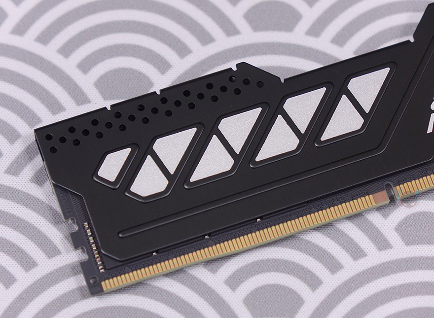 MDK5 DDR5 6000MHz 96GB Kit 메모리의 방열판을 살펴보면, 블랙 색상 바탕에 방열판 높이는 약 28mm로 30mm가 넘지 않기 때문에 타워형 CPU 쿨러와의 간섭 발생은 거의 없다고 볼 수 있습니다. 또한, 방열판 한쪽에는 윗부분에 타공망(Mesh) 디자인을 적용했으며, 반대쪽에는 Neo Forza 로고(Logo)와 MDK5 표기를 해놨죠. 물론, 방열판 반대편도 디자인은 동일하며 라벨 스티커에는 메모리 사양을 확인할 수 있는데, 단일(Single)로 48GB, 6000MHz 클럭, CL40 타이밍값을 확인할 수 있죠. Non-RGB 모델이기 때문에 방열판 상단에는 특별한 디자인이 없습니다.