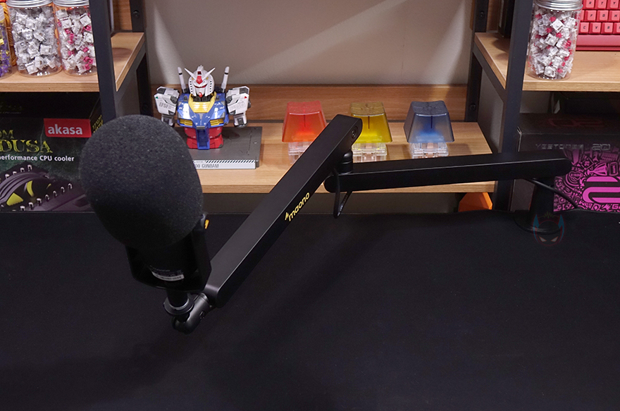 그리고, 기본적으로 이런 낮은 높이를 가진 마이크 붐 암의 최대 장점은 바로 공간차지와 간섭이 적다는 거죠. 특히, 모니터 테이블 공간을 많이 차지하는 만큼 일반적인 마이크 붐 암까지 사용하면 더 공간을 차지하게 되는데, BA92처럼 로우 프로파일 마이크 붐 암이면 기본 높이가 63mm부터 시작하기 때문에 모니터 공간 아래에 설치해서 자유롭게 마이크를 사용할 수 있습니다. 또한, 케이블정리도 앞서 확인했듯이 암 아랫부분 공간에 정리되기 때문에 깔끔함도 함께 갖추게 되죠.