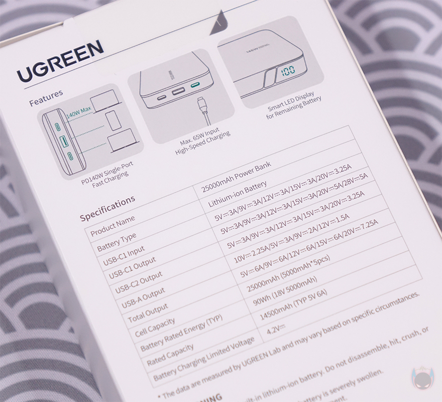 이제 거의 모든 휴대용 및 소형 전자제품들이 USB Type-C로 전원을 공급받거나 충전을 지원하죠. 그래서, 이제 고속충전도 대중화가 되었습니다. 예전에 고속충전이라고 하면 국내에서 판매되는 스마트폰을 많이 생각하기 때문에 20~30W 정도를 생각하지만, 이제 노트북이나 해외 스마트폰 기준으로 보면 고속충전은 아무리 못해도 40W 이상 가장 흔히 보게 되는 건 65W나 100W입니다. 물론, 15W 이상부터는 PD 3.0 규격으로 최대 100W까지 지원하기 때문에 규격으로 보며 모두 동일한 범위에 있죠. 그래서, 현재 최대 고속충전 보조배터리를 구입하더라도 가장 흔히 볼 수 있는데 최대 100W 지원입니다. 하지만, 최근에 PD 3.0 다음인 PD 3.1 규격으로 정확히는 USB 규격으로 썬더볼트 겸용의 USB 4 지원이 점점 늘어나면서 여기 속하는 충전으로 PD 3.1 지원의 보조배터리 제품들이 하나둘씩 나오기 시작했는데, 유그린(UGREEN)도 그 중심에 있습니다. 바로, PD 3.1 규격의 총 145W 고속충전 보조배터리 제품을 출시했죠. 용량도 25,000mAh으로 대용량입니다. 그래서, 이번 시간에는 유그린의 145W 25,000mAh 보조배터리 제품을 한 번 만나보도록 하겠습니다.