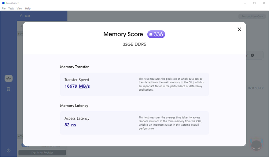 물론, 메모리는 어떤 환경에 사용하느냐에 따라서도 성능의 위치가 달라집니다. Novabench의 Memory Test 같은 경우에는 AIDA64 Memory Benchmark와 달리 용량도 성능에 영향을 미치는데, 대용량을 제외하고 동일한 용량의 DDR5 모델과 비교해 보면 7200 MHz보다 한 단계 아래임을 확인할 수 있으며, Passmark의 PerformanceTest-Memory Mark에서도 동일한 성능위치를 보여줍니다. 그리고, 메모리 비중이 높은 Adobe의 포토샵이나 프리미어 프로 편집작업을 그대로 사용해 벤치마크할 수 있는 Procyon에서도 Photo Editing Vido Editing 성능결과, 6000MHz이상의 DDR5보다는 성능에 앞서고, 7200MHz보다는 한단계 아래임을 확인할 수 있습니다. 물론, 전체 DDR5 모델 중 상위권에 있는 성능임도 그대로 확인이 되는 거죠.