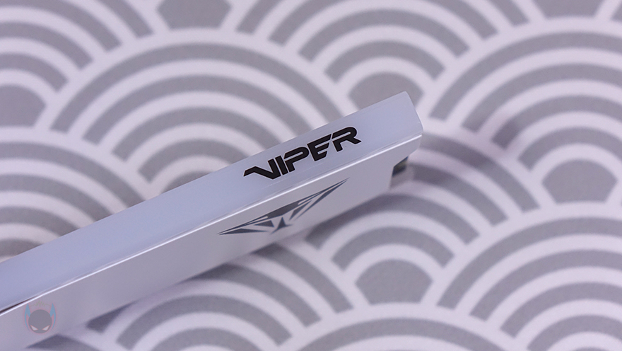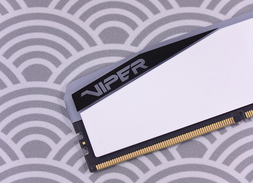 패트리어트(Patriot) VIPER Elite 5 RGB DDR5 48GB(24GBx2) 메모리 외형을 살펴보면, 용량에서 차이를 두기 때문에 방열판 디자인은 동일합니다. Elite 5 시리즈가 화이트 콘셉트로 나왔기 때문에, 화이트색상의 방열판을 확인할 수 있고, 좌우 비대칭의 디자인으로 한쪽에는 VIPER 문구를 반대쪽에는 뱀-형상의 VIPER 로고를 새겨놨죠. 물론, RGB 모델이기 때문에 상단에 RGB 라이트닝 효과를 위한 LED-바(Bar)가 적용되어 있으며, 한쪽에 역시 VIPER 문구를 새겨놨습니다.