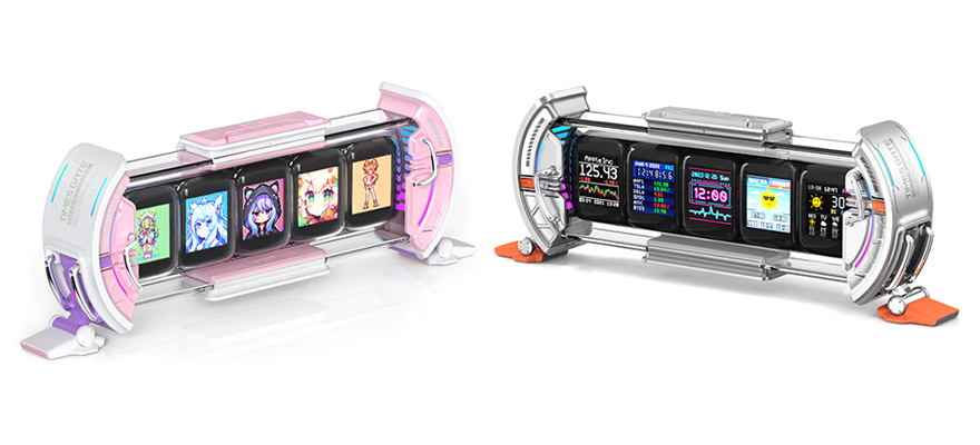 최근 데스크를 자신만의 스타일로 꾸미는 데스크테리어(Deskterior) 열풍이 생기면서, 테이블에 올려놓는 다양한 액세서리 제품들 중 픽셀 아트 콘셉트로 소비자들에게 잘 알려진 Divoom(디붐)이 새롭게 선보인 디스플레이 제품 Times Gate(타임즈 게이트)는 또 한 번 소비자들의 시선을 사로잡게 해주는 제품입니다. 마치 게이트 문이 열리는듯한 형상의 사이버틱한 디자인으로 5개의 LCD 화면에 사용자가 원하는 화면설정을 할 수 있어서, 다양한 용도로 연출할 수 있는 제품이죠. 시계, 스코어보드, 날씨, 구독자, 소리 반응, 주식, 가상화폐 등 다양한 기능들을 이용자들이 직접 만들어서 공유하는 어플 지원으로 어플과 Times Gate를 연동해 원하는 화면 연출을 할 수 있습니다. 물론, 직접 자신만의 애니메이션 프레임을 만들 수도 있죠. 여기에 제품 주변에 RGB 라이트닝 효과를 총 12가지 모드로 지원해주고 있어서, 자신이 꾸미는 데스크 콘셉트의 조명과도 잘 어울릴 수 있도록 했습니다. 또한, 최근엔 핑크(Pink) 색상까지 추가로 출시되었죠. 그동안 데스크테이어에 어울릴 수 있는 다양한 액세서리 제품들이 있었지만, 디스플레이 전시로는 이 제품이 가장 소비자들에게 만족도가 높을 것 같다는 생각이 듭니다. 데스크테리어에 관심이 많아서, 데스크에 올려놓는 액세서리 제품들 찾고 있었다면, 하나의 제품으로 다양한 화면 연출을 할 수 있는 Divoom(디붐)의 Times Gate(타임즈 게이트)를 추천합니다.