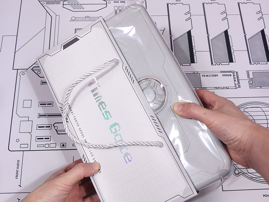 제품박스부터 살펴보면, Times Gate는 별도의 배송 포장박스까지 적용되어 있습니다. 배송 포장박스에도 Times Gate라는 문구를 새긴 디자인을 적용하고 있으며, 포장박스를 열어보면 외부 충격방지를 위한 에어캡(Bubble Wrap) 포장을 확인할 수 있습니다. 그리고, 에어캡 안에는 쇼핑백(shopping bag)처럼 손으로 들고다닐 수 있게 제품 포장을 해놨는데, 안에는 전체 비닐로 한 번 더 포장된 제품 박스이자 Times Gate 전용 보관박스가 들어있습니다. 포장부터 제품 전체 포장까지 상당히 신경 썼다는 걸 느낄 수 있죠.