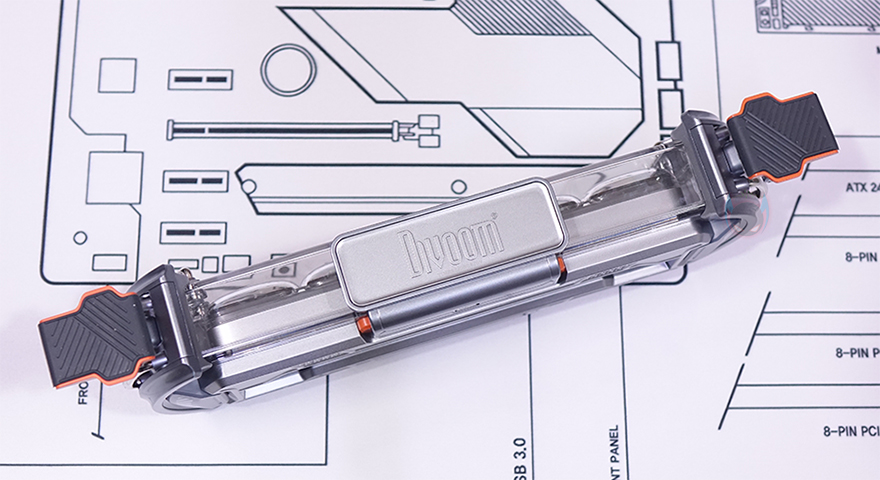 그럼, 본격적으로 Divoom(디붐)의 Times Gate(타임즈 게이트)를 살펴보는데, 개봉 시 LCD를 감싸고 있는 투명관 부분에는 보호비닐이 부착되어 있습니다. 그리고, 색상은 출시 초기에는 실버(Silver) 1가지 색상만 있었는데, 최근에 핑크(Pink) 색상이 추가로 출시되었죠. 제품 형태는 테이블에 올려놓는 제품이기 때문에 탁상용 형태를 가지고 있습니다. 그리고 전체적인 디자인은 사이버펑크(Cyberpunk) 같은 느낌의 디자인으로 한눈에 봐도 마치 게이트(Gate)가 양쪽으로 열린 모양에서 모티브를 가져왔다라는 걸 쉽게 알아볼 수 있습니다. 참고로, 제품 크기는 283x47x97mm이며, 무게는 406.4g입니다.