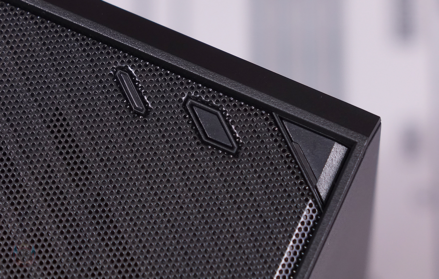 MILO 12 PC케이스는 수평/수직 어느 방향이든 놓고 사용할 수 있기때문에, 양쪽 사이드 패널(Side panel) 디자인을 동일하게 마름모 디자인의 에어홀 처리를 적용하고 있습니다. 물론, 안쪽에는 먼지필터(Dust filter)도 기본 적용된 것을 간접적으로 확인할 수 있죠. 그리고, 양쪽 측면 역시 마름모 디자인의 에어홀 처리를 해놨습니다. 또한, 전면과 구분되는 앞쪽 경계 부분은 직각이 아닌 커팅형태의 디자인으로 처리했으며, 뒤쪽에는 Silverstone 로고를 새겨놨죠.