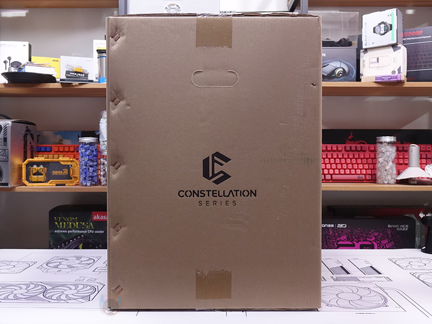 제품박스부터 살펴보면, 박스 전면에는 모델명과 함께 풀-타워 케이스라는 문구를 확인할 수 있듯이 C8은 어항케이스에서도 제법 부피가 있는 제품입니다. 그래서, 박스 패키지도 큰 편이죠. 모델명 외에도 제품 이미지를 담고 있어서 C8 디자인 부분을 미리 간접적으로 확인을 할 수 있으며, 박스 후면에는 부위별 주요 특징을 이미지로 부각하면서 아래에 C8 소개문구와 쿨링, 부품 장착 규격 지원 등에 대한 제품 특징을 표기해 놨습니다. 그리고, 박스 한쪽 측면에는 이번 첫 시리즈인 Constellation 로고 문구를 새겨놨으며, 반대쪽에는 제품 기본사양을 다국적 언어로 표기해놨는데, 한국어도 포함되어 있죠. 크기부터 쿨러 높이, 그래픽카드 길이, 쿨링 지원 등 상세하게 표기해 놨습니다.